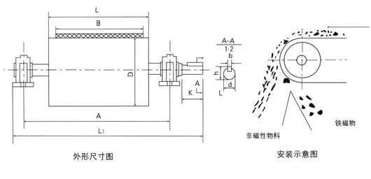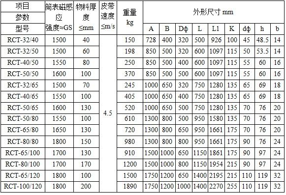 RCTG系列永磁滾筒亦稱磁滑輪或干式大塊磁選機(jī)。其內(nèi)部采用高性能硬磁材料組成復(fù)合磁系,具有磁場強度高、深度大、結(jié)構(gòu)簡單、使用方便、不需維修、不消耗電力,常年使用不退磁等特點。可用于水泥、磁選、礦山、鋼鐵、化工、耐火材料、垃圾處理等行業(yè)的選鐵。與DT-75型、AD-80型通用固定式皮帶輸送機(jī)配套使用代替主動輪,也可與專用皮帶輸送機(jī)制造配套。